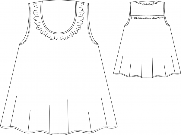 Comme souvent chez Atelier Scämmit, plusieurs options sont proposées avec l’ajout de volants sur le décolleté et sur une ligne du dos. Pour cette première version, je suis resté sage avec simplement une petite ligne de volants dans le dos.