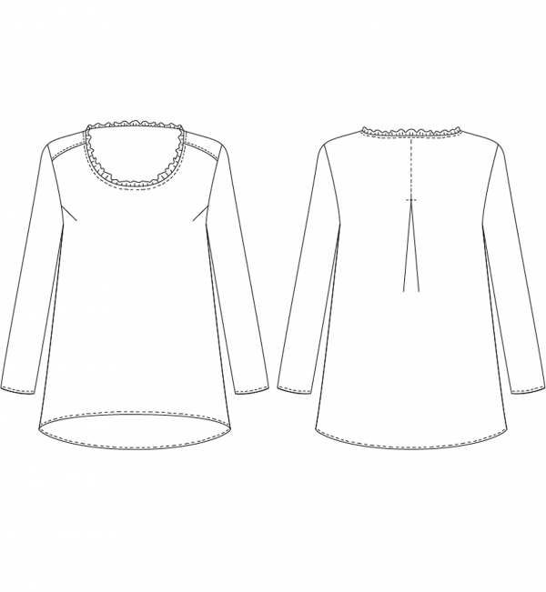 Le tombé de la blouse est parfait, les manches sont bien longues comme je les aiment et le col à froufrous n’est pas trop près du coup ce qui est très agréable à porter. Sa forme plus courte sur le devant me rappel ma blouse Folk de Vanessa Pouzet que j’avais déjà adoré mais qui diffère totalement pour le reste.