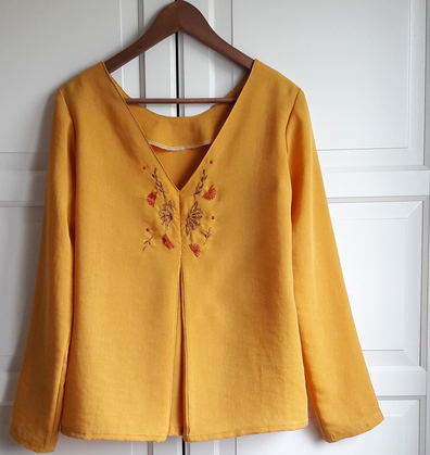Le patron propose également une version avec passepoil sur les épaules, petits boutons dans le dos ou de broder l’arrière au-dessus du plis creux pour plus de fantaisie. Mon tissu étant déjà bien marqué, je n’ai rien ajouté mais je trouve les propositions de la créatrice vraiment sympa pour s’approprier le modèle.