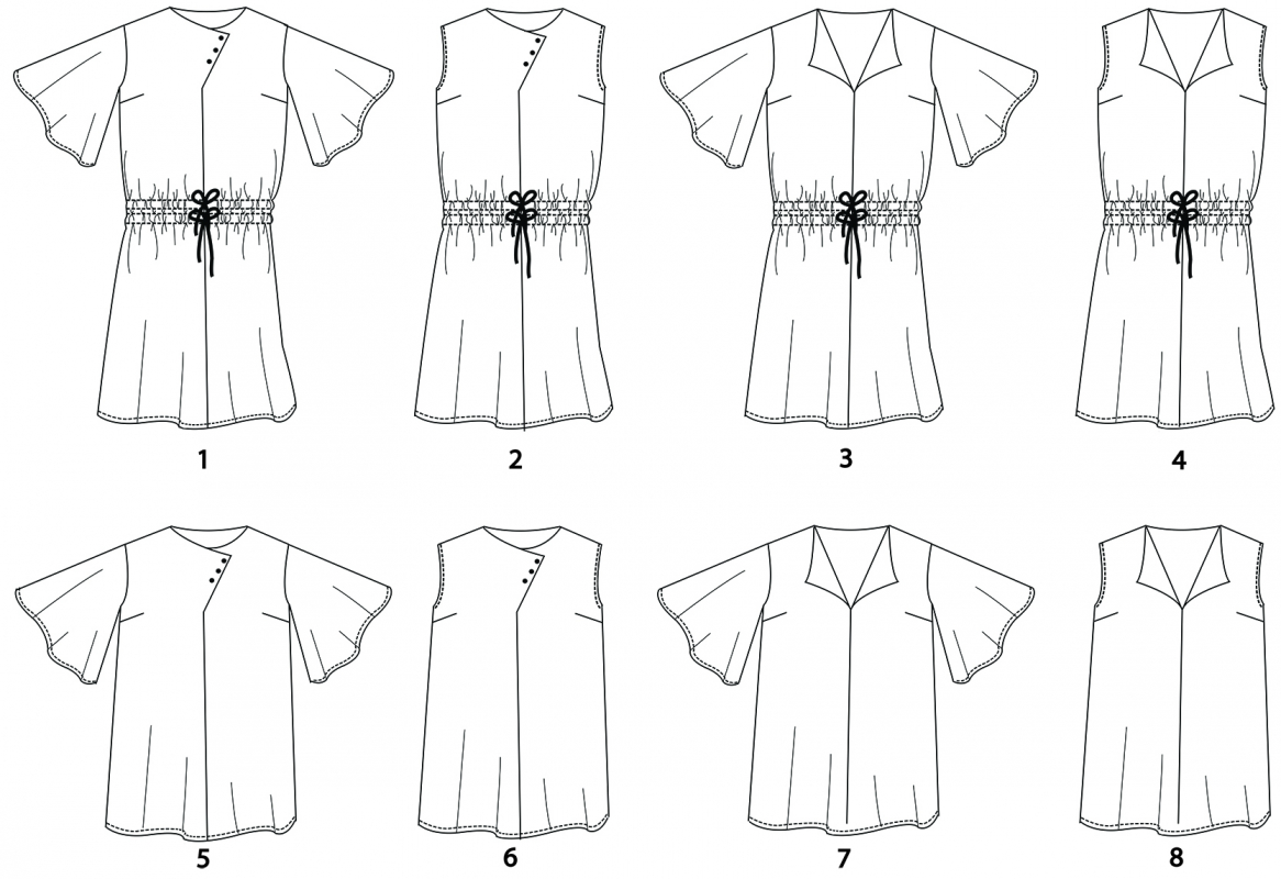 Le patron propose également une option de manches fluides aux coudes à réserver aux tissus particulièrement fins et fluides pour éviter un volume trop important. La robe est facilement déclinable en version top sans manches pour une couture express.