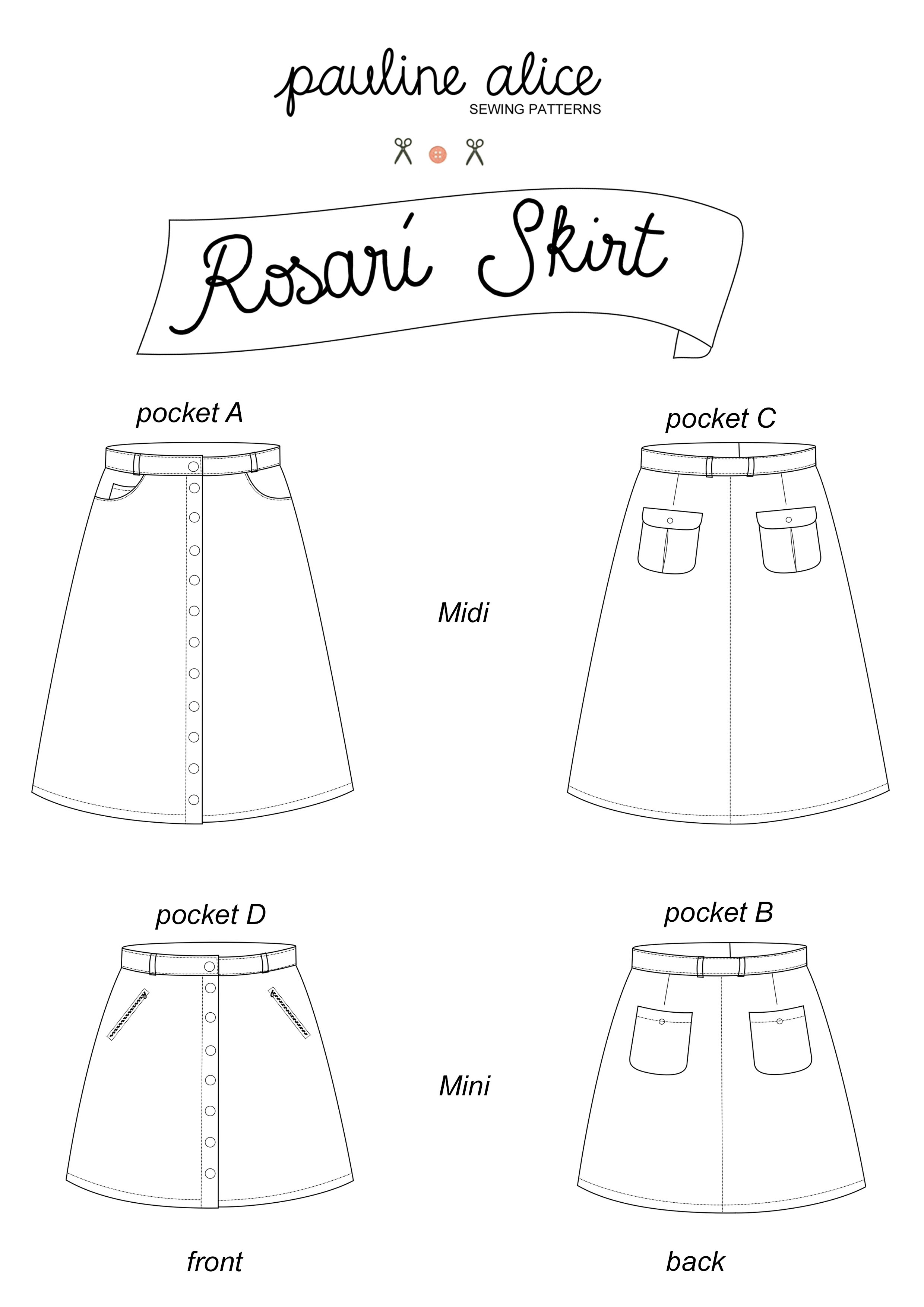 Cela fait des mois que le patron de la jupe Rosari de Pauline Alice trône dans mon petit atelier couture, et je me suis enfin décidée pour coudre ma première version (qui ne sera pas la dernière c’est certain) dans une jolie suédine noire de chez Mondial Tissus. Le patron de cette jupe est une fois de plus très bien coupé et possède près de 4 versions de poches avant et 2 longueurs.