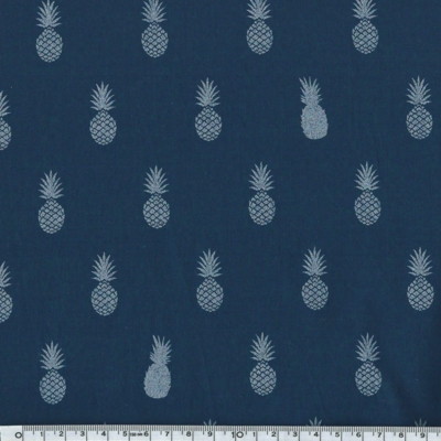 Je ne me l’explique pas, si ce n’est que ce petit noeud sur les manches me fait totalement craquer. Dès que j’ai souhaité cette deuxième version, j’ai pensé au joli tissu A nana’s fabric sur lequel j’avais flashé sur le stand de Motif Personnel au dernier salon du DIY ce printemps à Paris. Je l’avais pris en bleu marine et ananas argenté et il n’attendait plus qu’un patron fluide et sobre pour se révéler.